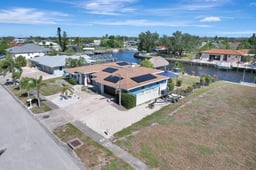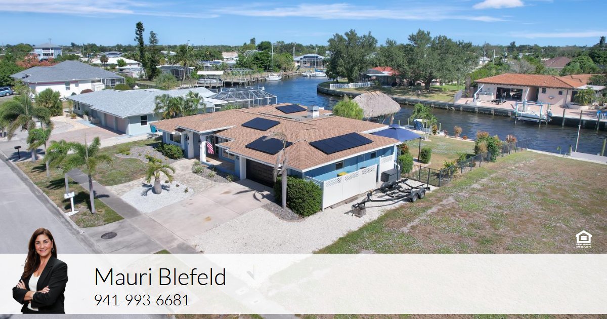 Ready for Your New Life on the Water . This Sailboat Access Waterfront Retreat with Updated with Pool, Dock & Tiki Bar awaits you! Welcome home to your slice of paradise in sunny Port Charlotte — this home has been beautifully updated and offers a waterfront retreat with direct sailboat access to Charlotte Harbor. Nestled at the end of a quiet cul-de-sac, this inviting residence captures the essence of the Florida lifestyle with its serene water views, coastal-inspired interiors, and effortless indoor-outdoor flow. Step inside to find soothing coastal hues, elegant crown molding, and tray ceilings that add a touch of sophistication throughout. The custom kitchen is a chef’s delight, featuring granite countertops, stainless steel appliances, a 5-burner propane cooktop, and a built-in wine refrigerator. Gather with friends in the spacious family room that opens through double sliders to your private pool patio — where a heated saltwater pool, tiki hut, and gazebo create the perfect backdrop for sunsets over Edgewater Lake. The owner’s suite is a sanctuary of comfort, complete with a wood-burning fireplace, sitting area, and private access to the pool. The updated vanity area, walk-in closet, and luxurious walk-in shower with an on-demand tankless water heater elevate everyday living. Imagine waking up to sparkling water views, sipping coffee by the pool, and knowing you can take your boat out anytime — no bridges, no limits, just you and the open water. The recent updates include: 2023 roof, 2025 Daikin AC with Nest thermostat, and 2024 solar panels for energy efficiency. New Trex dock (2024) with pilings, ladder, dock lights, and 100 feet of concrete seawall — perfect for your boat. Updated guest bath (2024), new LVT flooring, fresh interior paint, invisible dog fence, and new washer/dryer. Enjoy tranquil mornings by the water, afternoons by the pool, and evenings under the tiki hut — all from your move-in-ready Florida dream home.